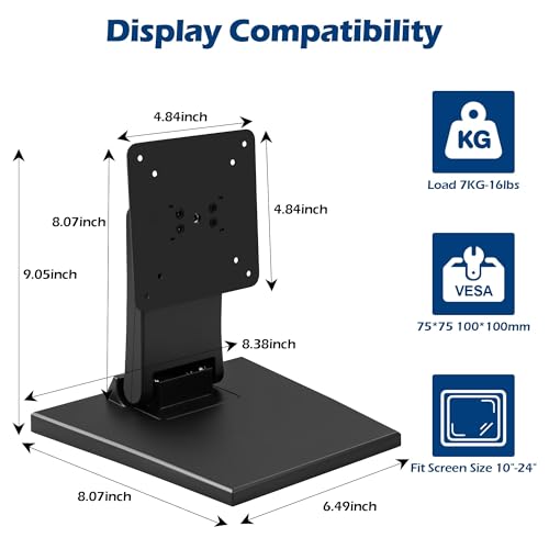 Low Profile Monitor Stand – Foldable Touch Monitor MINI PC Stand Compatible with VESA 75×75 and 100x100mm Monitor Mounts For Kiosk,AIO Monitor Base Adjustable Folding Flat