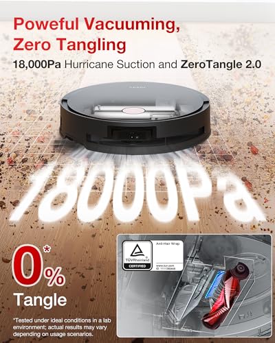 18000Pa Powerful Suction & ZeroTangle 2.0 – With an impressive 18,000Pa suction power and ZeroTangle 2.0 Anti-hair tangling technology, YEEDI S14 PLUS tackles pet hair and embedded dirt with ease. Its ultra-thin design and embedded radar ensure seamless navigation under furniture and in tight spaces, delivering thorough and efficient cleaning.
