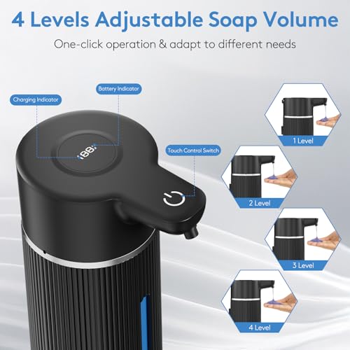 Automatic Soap Dispenser Touchless, 14.2oz/420ml Dish Hand Soap Dispenser for Kitchen Bathroom, Adjustable Volume for Thick & Thin Liquid, USB C Rechargeable, Clog-Free, Black