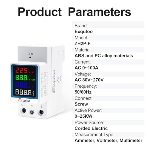 Multi-Function Energy Meter Color Digital Energy Meter – Measurement of AC Volts, Amps, Hertz, Watts, PF and Kilowatt-Hours – GT2P-E, AC 80~270V, 0~100A, 0~25KW, 50/60Hz, Rail-Mounted Meter