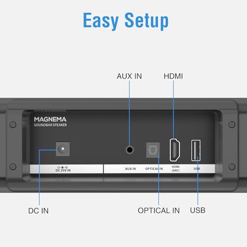 Elevate your TV audio – Featuring two 2.25″ front-firing full-range speakers and two 3.5” built-in bottom-firing subwoofers, the MAGNEMA TV speaker is a small soundbar that enhances your TV audio experience with 120W of loud sound, clear dialogue, and well balanced bass, all without the hassle of setting up an external subwoofer