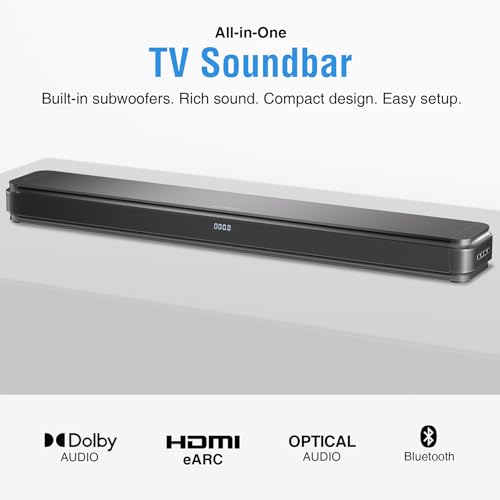 Compact design – With a length of 37″ and a height of just 3″, this small all-in-one TV sound bar fits most entertainment consoles and TV stands. Note: Des not support wall mount.