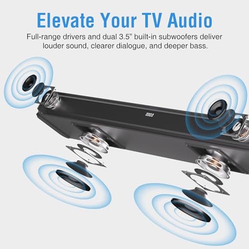 2.1ch 120W Sound Bar for TV with Dolby Audio and Dual Built-in Subwoofers, Bluetooth TV Speaker Soundbar with HDMI-ARC, RCA and Optical Connectivity, Enhanced Clarity and Balanced Bass, Black